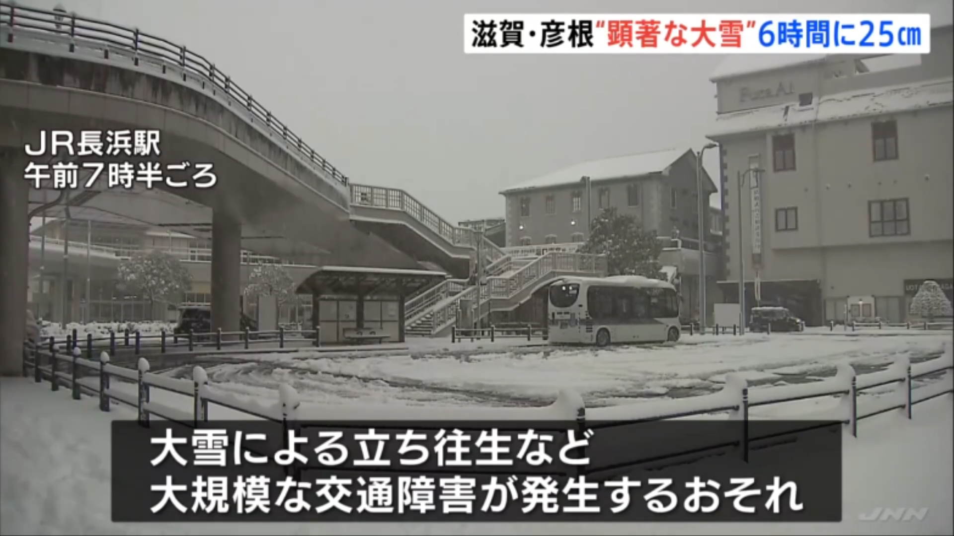 滋賀県彦根市では午前4時までの6時間に25センチの雪が降り、気象台が「顕著な大雪に関する気象情報」を発表しました。 시가현 히코네시에서는 오전 4시까지 6시간 동안 25cm의 눈이 내려, 기상대가 '현저한 대설에 관한 기상 정보'를 발표했습니다.